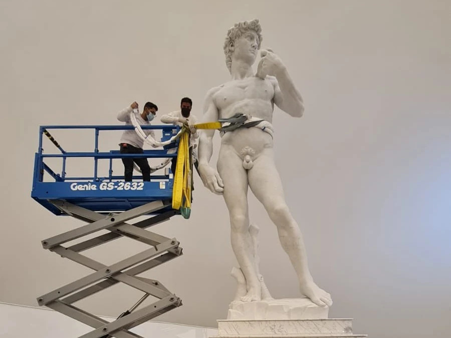 La escultura "El David" de Miguel Ángel desde Italia ahora en el museo Soumaya , conoce la llegada del gigante a México.